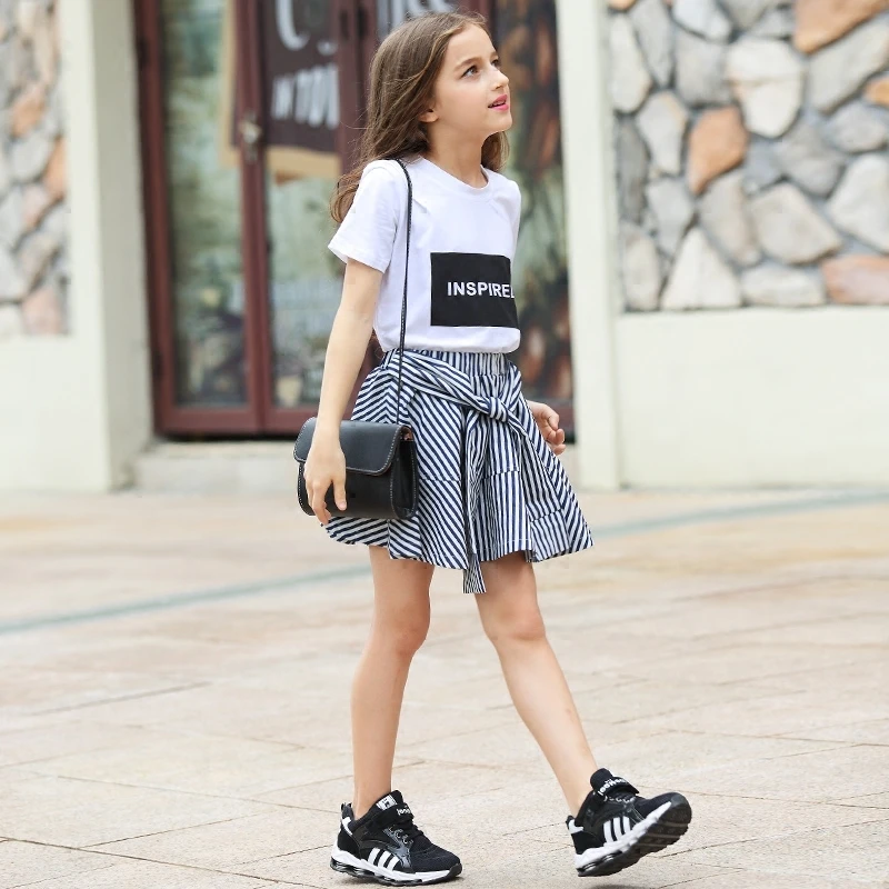Gadis Remaja Pakaian Musim Panas Anak Perempuan Set 2 Pcs Kapas Tops Bergaris Celana Rok Usia 6 8 10 12 14 15 Tahun Gadis Pakaian Set Pakaian Aliexpress