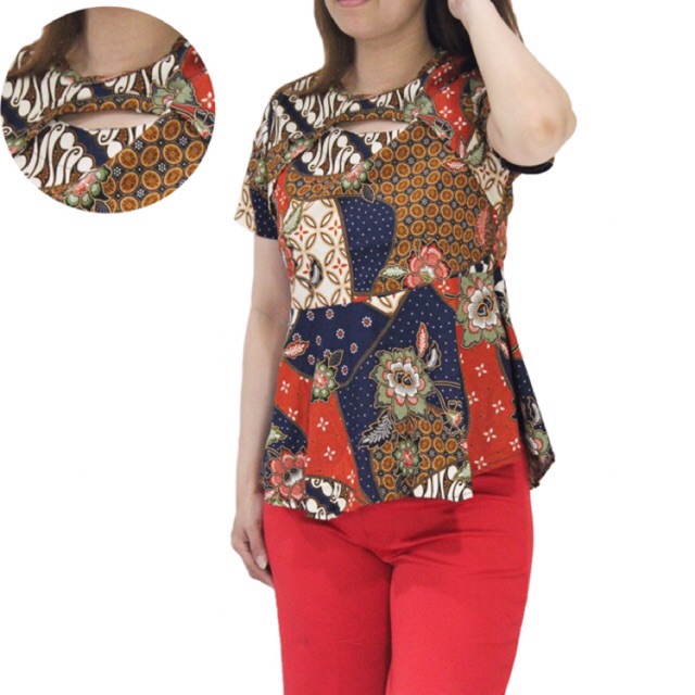 Nt8 Atasan Batik Wanita Bahan Katun Strecth Model Peplum Lengan Pendek U Blouse Kerja Kantoran Shopee Indonesia
