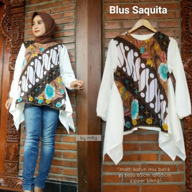 Jual Akt022 Atasan Batik Kombinasi Tulis Wanita Kemeja Blouse Baju Tunik Di Lapak Liesha Batik Bukalapak
