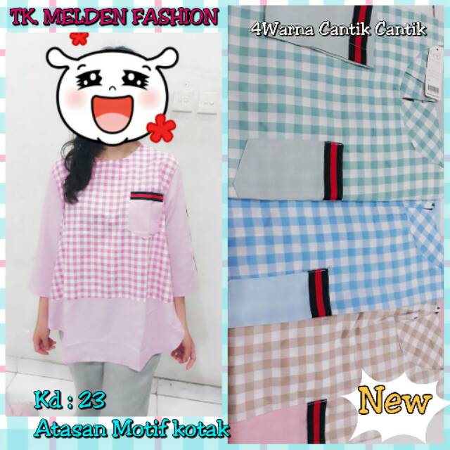 Atasan Jumbo Tangan 7 8 Motif Kotak Kombinasi Polos Shopee Indonesia