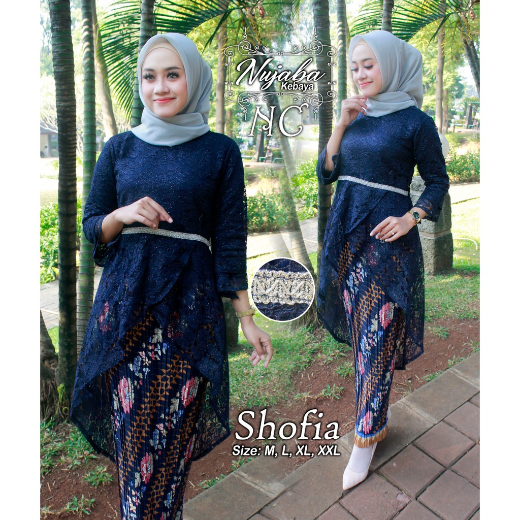 Kebaya Brokat Setelan Terbaru Warna Navy Kebaya Brokat Kebaya Wisuda Kebaya Modern Terlaris Shopee Indonesia