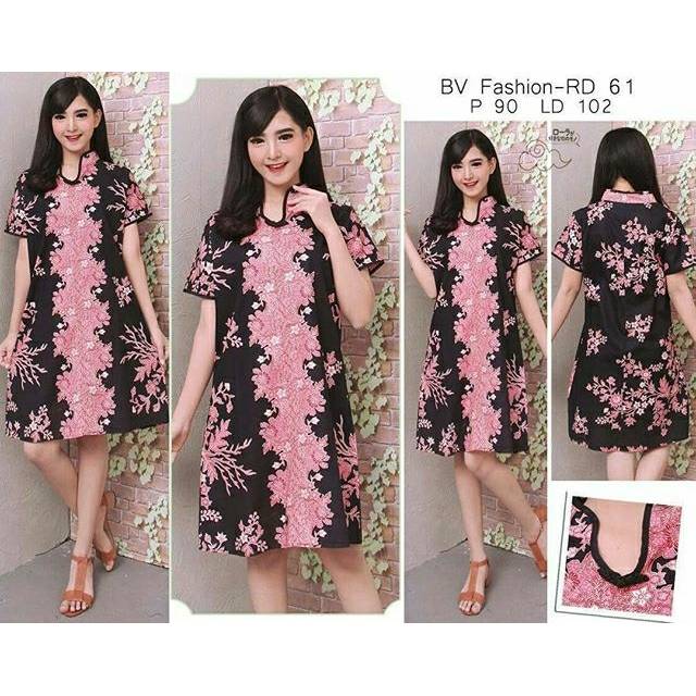 Rd61 Fashion Baju Outfit Pakaian Dress Batik Modern Lengan Pendek Cewek Wanita Murah Shopee Indonesia