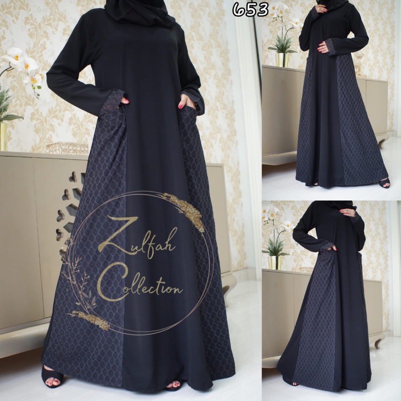 Abaya Dubai Kombinasi Brokat Warna Hitam Abaya Turkey Kualitas Tu555 Zuri Abaya Gamis Kaftan Dres Shopee Indonesia