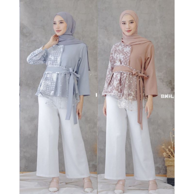 New Arrival Atasan Wanita Blouse Sabrina Atasan Wanita Kekinian Blouse Batik Kombinasi 2 Bahan Baju Atasan