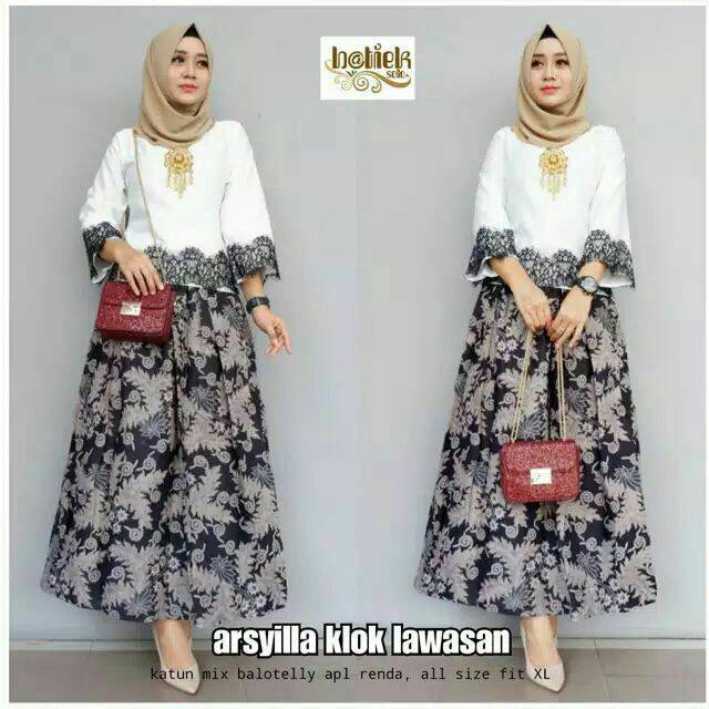 Setelan Blouse Rok Batik Klok Lebar Lawasan Balotelli Set Kebaya Batik Warna Hitam Abu Putih Murah Shopee Indonesia