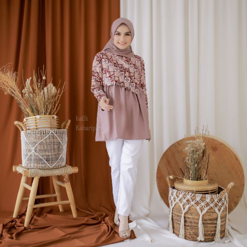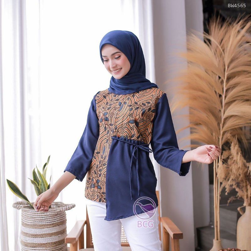 29 Atasan Batik Kombinasi Polos Wanita
